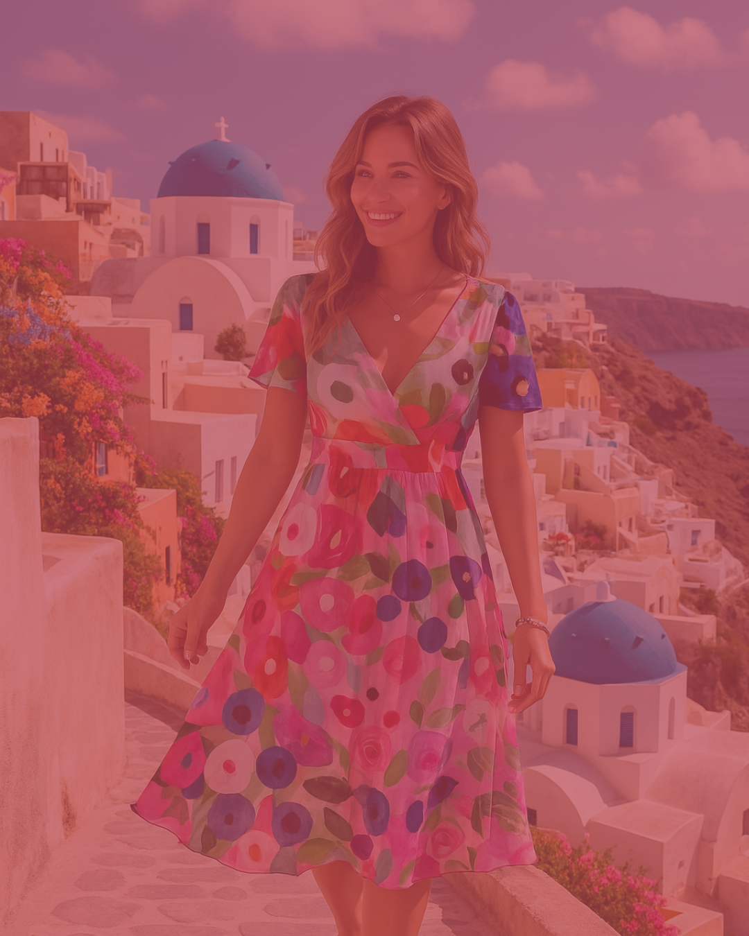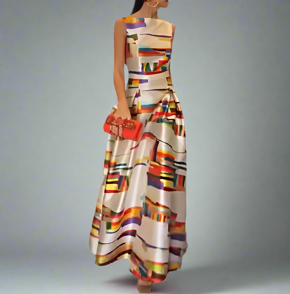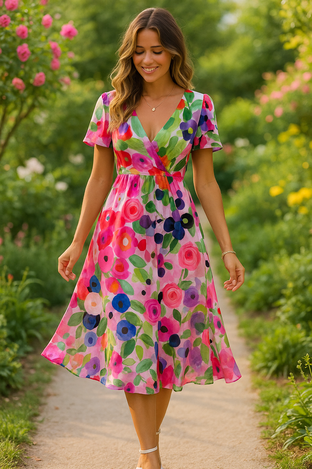 This dress is the perfect blend of elegance and whimsy. The vibrant floral print is eye-catching without being overwhelming, and the fit is both flattering and comfortable. The lightweight fabric moves beautifully, making it ideal for outdoor events like garden parties or weddings. A lovely choice for anyone who wants to feel feminine and confident.