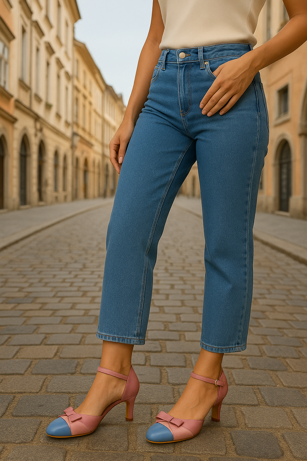 These shoes are a total standout, chic, playful, and surprisingly comfortable. The pink and blue color combo is refreshingly unique, and the bow detail adds a feminine touch. The mid-height heel is perfect for all-day wear, and the ankle strap keeps everything secure. Ideal for adding a pop of personality to both casual and dressy outfits.